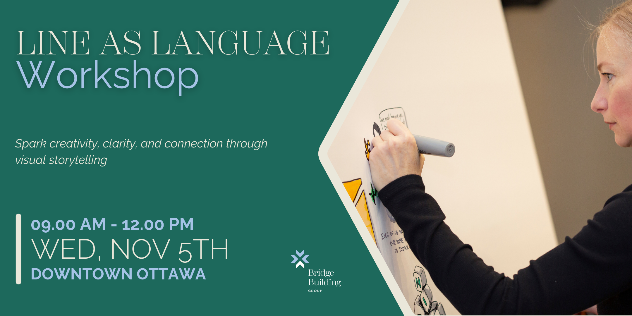 2025-11-05 09:00:002025-11-05 00:00:00America/TorontoLine as LanguageStep beyond words and explore the power of visual storytelling. This interactive session introduces the foundations of graphic facilitation and gives you hands-on practice with practical tools to: Strengthen listening and leadership skills Spark creativity and overcome perfectionism Deepen understanding of complex topics Support courageous and challenging conversations This workshop is perfect for leaders and […]Impact Hub Ottawa